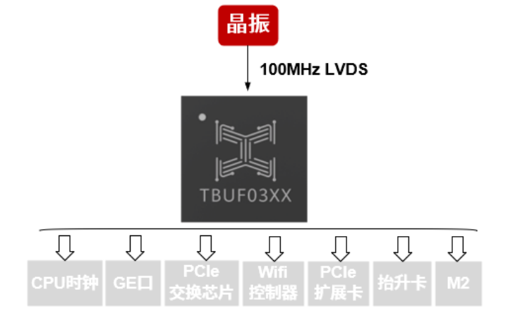 | TGEN6320 | 3.3V | 晶体/晶振 | LP-HCSL | 25MHz或100MHz | <50fs | 19 | -40℃~85℃ | QFN100 |